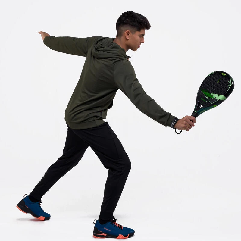 8754043Voor wie regelmatig padeltrainingen volgt in koud weer.Als je regelmatig padeltraining volgt heb je een technische, ademende sweater nodig die niet tegen je huid plakt. Deze sweater in een technische stof en met speciaal bestudeerd design is perfect voor jou.