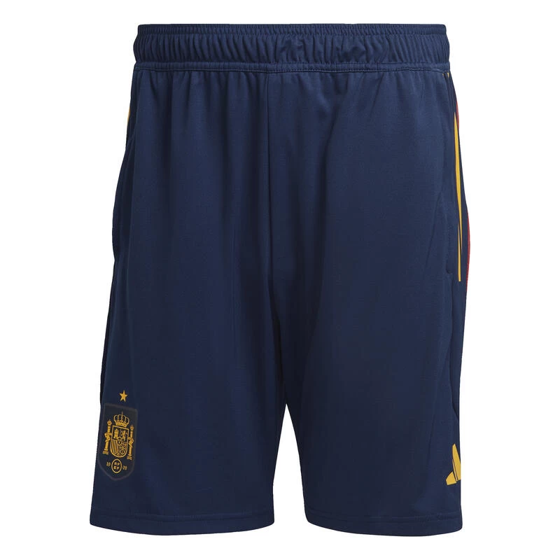 Als je traint voor de ultieme voetbaltrofee, telt elke seconde. Wanneer ze zich voorbereiden op de grootste wedstrijden, dragen de Spaanse spelers een adidas trainingsshort zoals dit exemplaar. AEROREADY absorbeert vocht om ze tot het einde van een uitdagende sessie fris te houden. Een opgestreken badge herinnert ze eraan waarvoor ze het doen.Dit met 100% gerecyclede materialen gemaakte product vertegenwoordigt slechts één van onze oplossingen om plastic afval te verminderen.