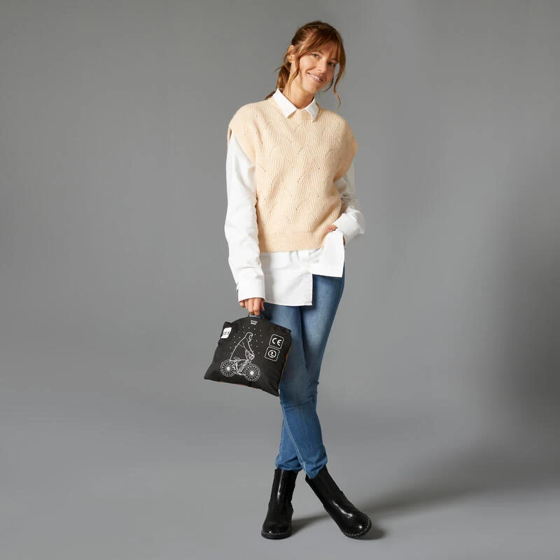 BTWIN FIETSPONCHO 540 STAD ZICHTBAAR ‘S NACHTS ZWART/CAMEL