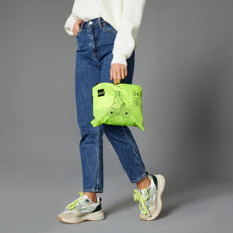 8759251Ontwikkeld voor wie af en toe in een gematigde regenbui fietst. Combineer de poncho met een regenbroek om ook je benen en schoenen te beschermen.Laat je niet verrassen door de regen: neem je opvouwbare poncho overal mee. Je bergt hem zo weer op in het voorvak.