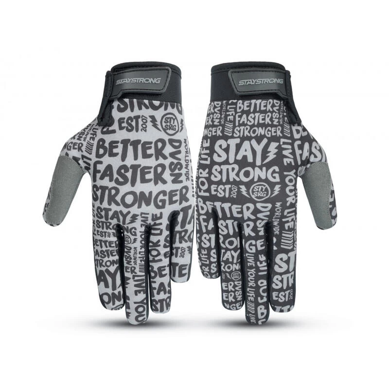 De Stay Strong SKETCH handschoenen hebben een comfortabele slanke pasvorm. De SKETCH handschoenen hebben een zeer duurzame Clarino palm. Dit textiel biedt maximale bescherming tegen schuren, verhoogde duurzaamheid en goede ventilatie. De handpalm en de wijs- en middelvinger zijn voorzien van siliconen patches die een optimale grip op het stuur bieden. De handschoen heeft een versterkte constructie met een Clarino patch op de duim.DETAILS:Clarino palm, een zacht, slijtvast en ademend textiel met een suede-achtige textuur en een zacht gevoel.Zachte Lycra bovenkant zorgt voor comfort en een goede pasvorm.Siliconen patch gedrukt op de palm, wijs- en middelvinger.Klittenbandsluiting voor een goede pasvorm.Machinewasbaar