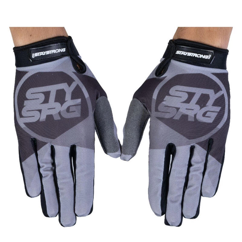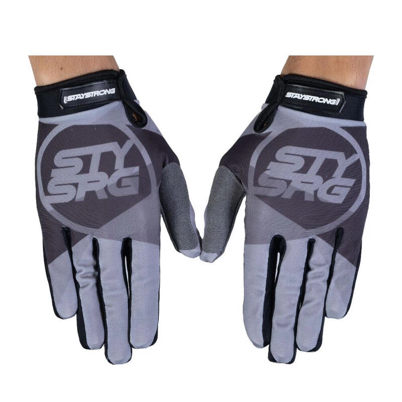 De Stay Strong Tricolour handschoenen hebben een comfortabele slanke pasvorm. De Tricolour handschoenen hebben een zeer duurzame Clarino palm. Dit textiel biedt een maximale bescherming tegen schuren, een grotere duurzaamheid en een goede ventilatie. De handpalm en de wijs- en middelvinger zijn voorzien van siliconen patches die een optimale grip op het stuur bieden. De handschoen heeft een versterkte constructie met een Clarino patch op de duim.DETAILS:Clarino palm, een zacht, slijtvast en ademend textiel met een suede-achtige textuur en zacht gevoel.Zachte Lycra bovenkant zorgt voor comfort en een goede pasvorm.Siliconen patch gedrukt op de palm, wijs- en middelvinger.Klittenbandsluiting voor een goede pasvorm.Machinewasbaar