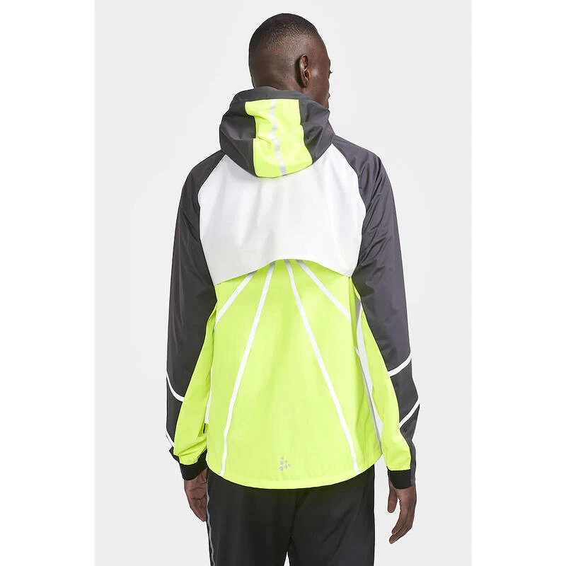 - Het PRO Hydro Lumen Jacket 2 is een hoogwaardig, weerbestendig hardloopjack met een glow-in-the-dark print, ontworpen voor intensieve trainingen bij regenachtig weer.