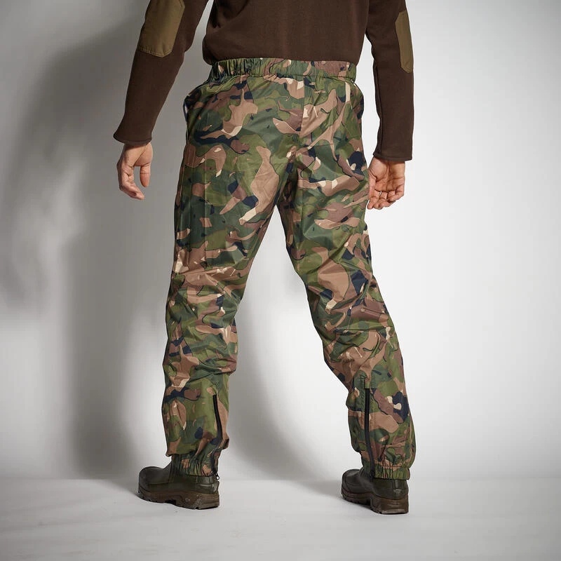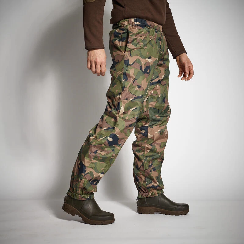 8649039Voor de jacht in het veld bij regenweer.Als je tijdens het jagen wordt overvallen door een plotse regenbui, trek je gewoon snel deze regenbroek aan. Dit waterdichte en compacte model is gemaakt van een stevige polyesterstof.