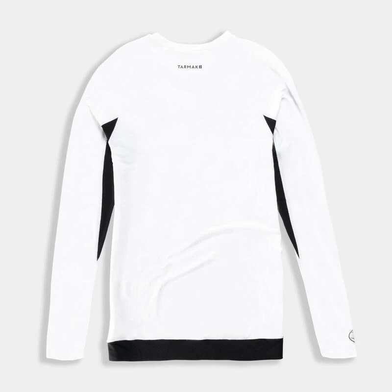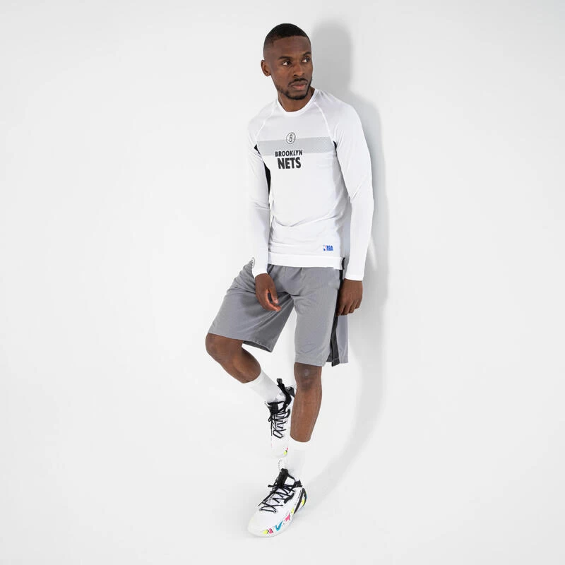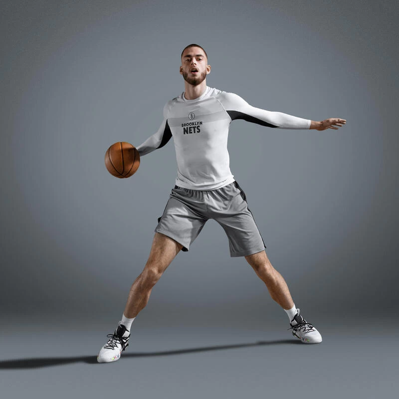 8734066Dit ondershirt met lange mouwen voor basketbal houdt je droog tijdens het sporten. Het verhoogt meteen ook je thermisch comfort.De rekbare anti-transpiratiestof biedt je een grote bewegingsvrijheid.