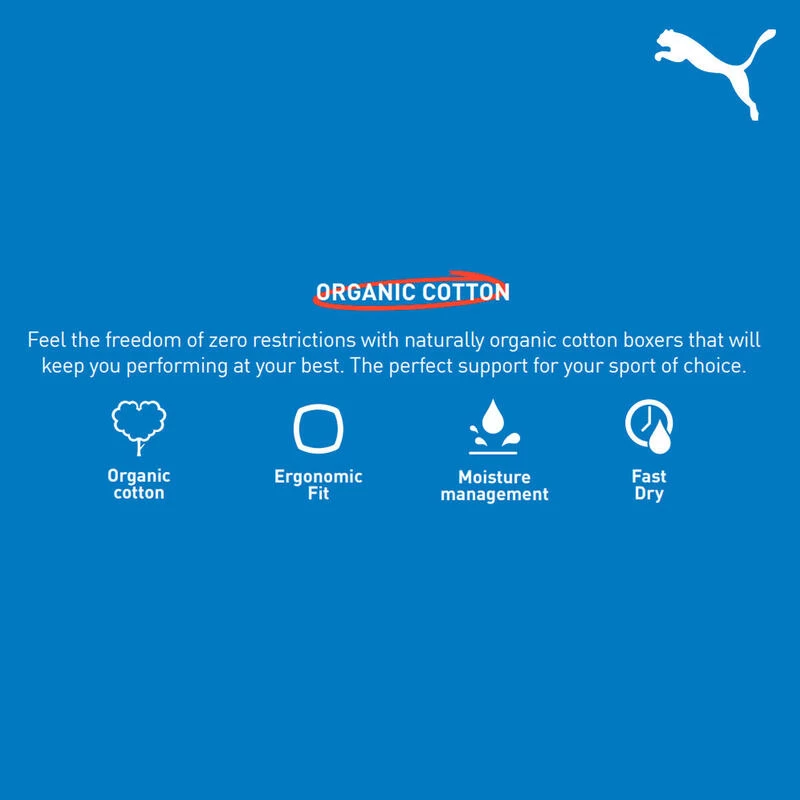 Puma Sport Boxershorts Katoen 2-pack BlauwBoxershorts met een natuurlijke pasvorm, waardoor je alle bewegingsvrijheid hebt om je beste prestaties te leveren. Deze katoenen boxershorts van PUMA beschikken over een ergonomische pasvorm en een ultiem comfort. De vochtbeheersing biedt je een snel drogende oplossing terwijl je onderweg bent. De TransDRY-technologie is een doorbrekende ontdekking voor boxers waarin je je beste prestaties levert. Gemaakt van biologisch katoen dat bijdraagt aan een betere toekomst.