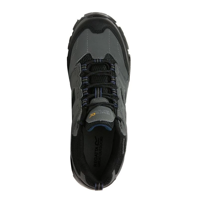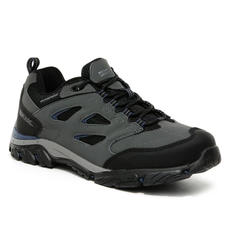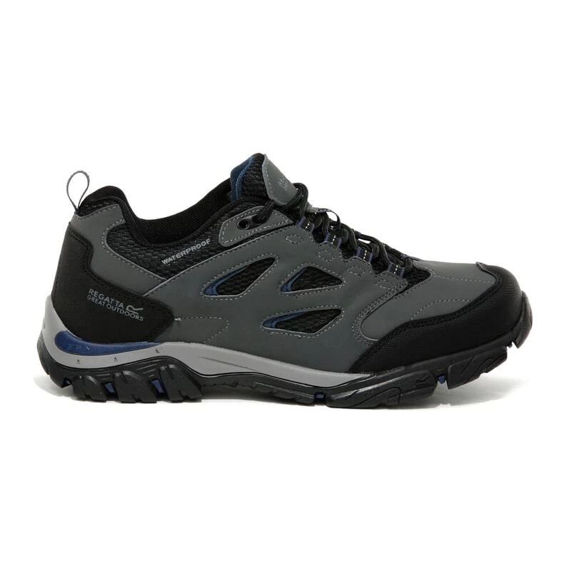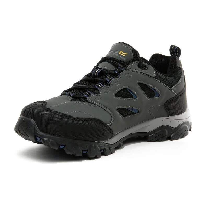 De Holcombe IEP Low Walking Shoe van Regatta voor heren is gemaakt van PU-suède en ademend gaas en voorzien van een waterafstotende Hydropel-afwerking en een waterdicht/ademend Isotex-membraan. De extra lichte IEP-zool (Internal EVA Pocket) biedt langdurig comfort en optimale grip. Gewicht: 504 gram.