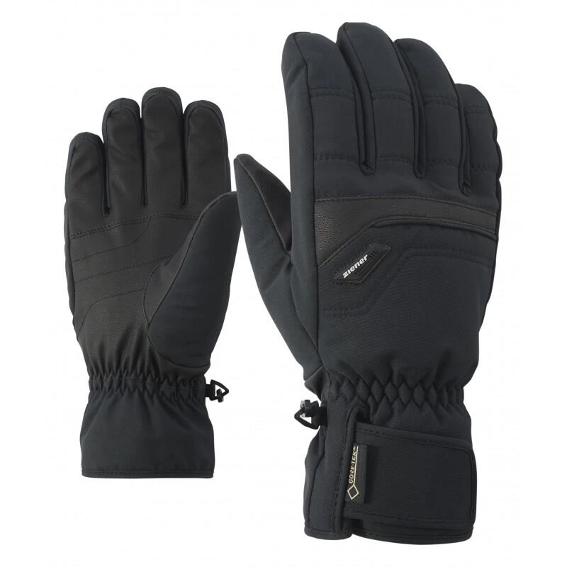 De klassieke, sportieve en warme GLYN GTX + Gore plus warme handschoenen van ZIENER zijn uitgerust met de GORE-TEX Gore plus warme technologie, zodat ze altijd waterdicht, winddicht, ademend en ultra warm blijven. Gegarandeerd! De voelbare handvoering in combinatie met een uitstekende verwarmende vulling zorgt voor optimaal comfort. De klittenbandsluiting op de pols zorgt voor een perfecte pasvorm en de handschoenen kunnen onder de jas worden gedragen.